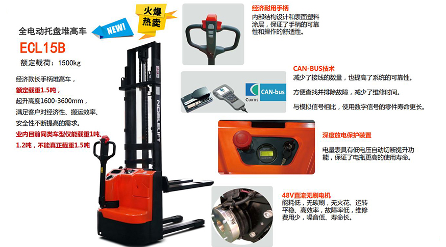 ? 長手柄堆高車,額定載重1.5噸,起升高度1600-3600mm
