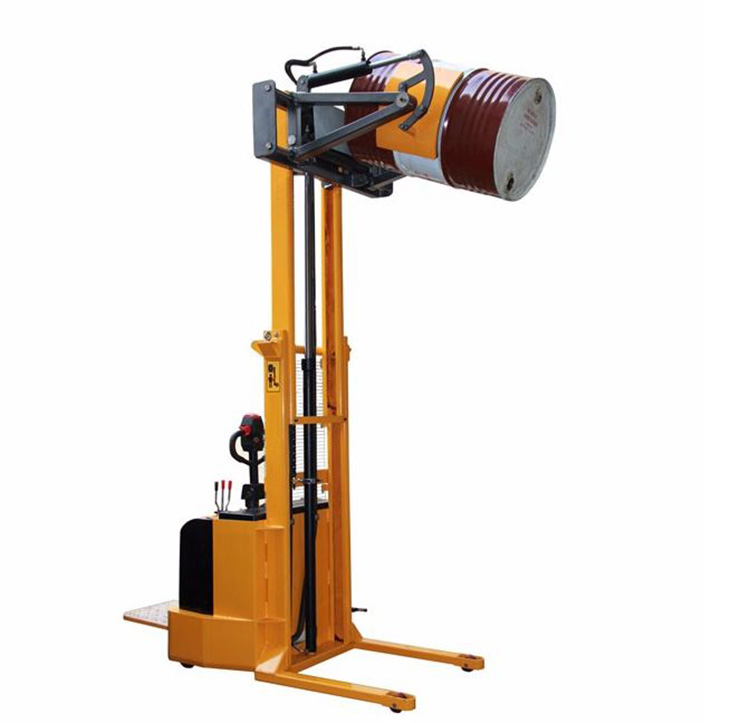 ? 全電動油桶翻轉(zhuǎn)車采用電動驅(qū)動、電控液壓抱夾、電動升高、電控液壓翻轉(zhuǎn)方式。