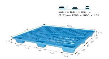 單面塑料托盤只能一面使用,表面有網(wǎng)格狀和平板狀兩種,底部有川字型、田字型、九腳型。