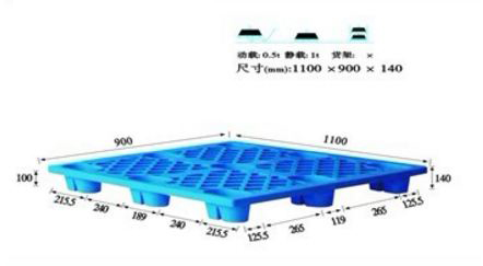 單面塑料托盤只能一面使用,表面有網(wǎng)格狀和平板狀兩種,底部有川字型、田字型、九腳型。