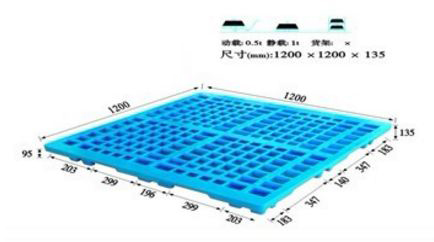單面塑料托盤只能一面使用,表面有網(wǎng)格狀和平板狀兩種,底部有川字型、田字型、九腳型。