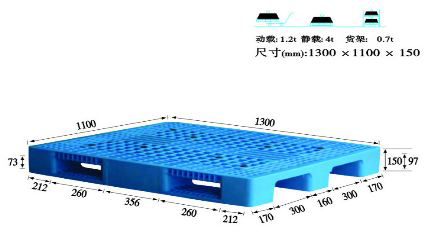 單面塑料托盤只能一面使用,表面有網(wǎng)格狀和平板狀兩種,底部有川字型、田字型、九腳型。
